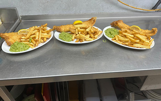 Served with homemade hand cut chips or mashed potato, with a choice of baked beans or mushy/garden peas.